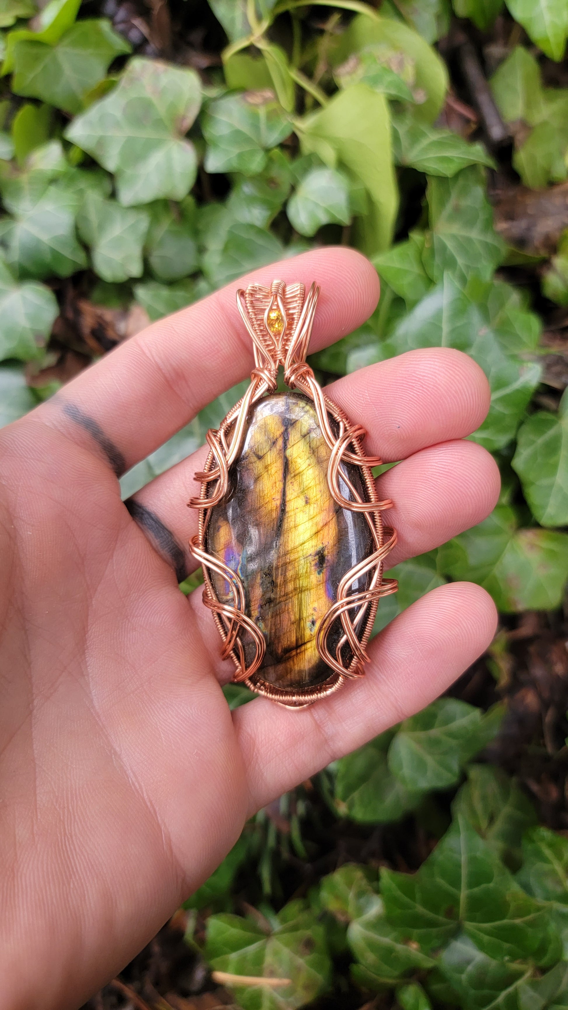 Yellow/orange Labradorite & Citrine Pendant Copper Jewelry